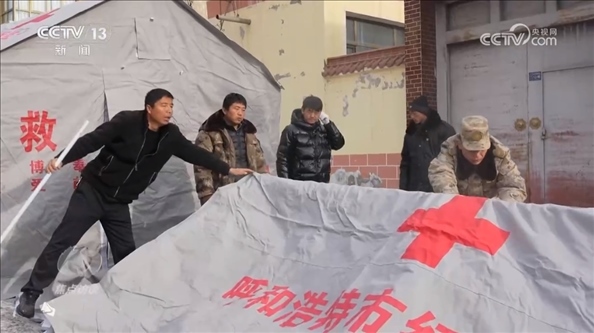 甘肅省臨夏州積石山縣石塬鎮(zhèn)振興社區(qū)副主任孔德義:“他發(fā)揮的作用特別大,因為他畢竟是部隊出身,身體素質(zhì)好,搭帳篷這一塊特別強。有他在的話,5分鐘就能完成一個,效率特別高。還有像如何規(guī)避余震帶來的傷害,他先給先鋒隊講解,我們再逐個分散開給群眾講解,等同于一個專業(yè)人士帶領著先鋒隊去幫助更多的群眾,去服務群眾?!?/p>