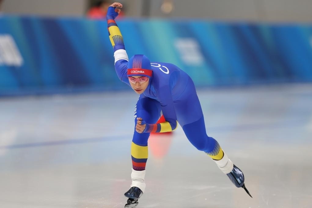 哥倫比亞速滑運(yùn)動(dòng)員伊莎貝拉·古鐵雷斯在女子1500米比賽中。新華社記者 許雅楠 攝