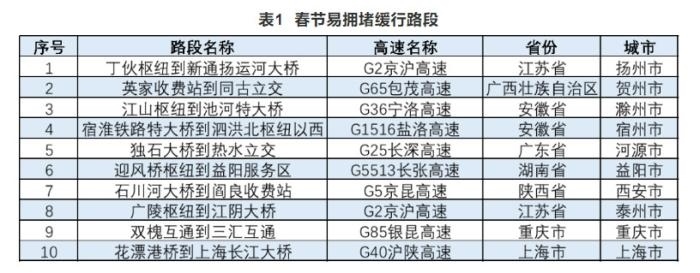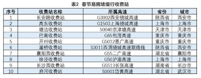 報告還公布了高速公路預計易發(fā)生擁堵緩行的路段、收費站以及較繁忙的服務區(qū)。