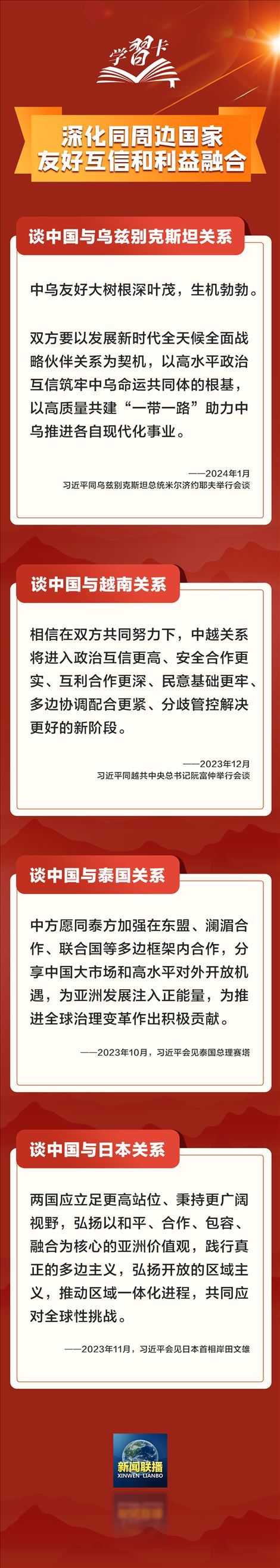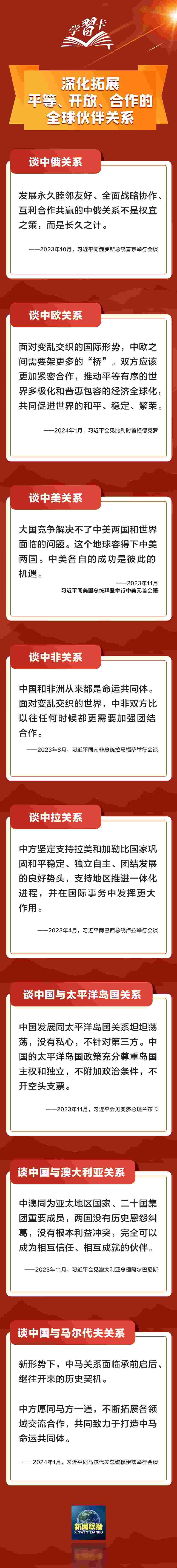 推動構建新型國際關系,打造覆蓋全球的“朋友圈”,習近平主席在多場外事會見中提出鮮明主張,一起學習↓↓↓