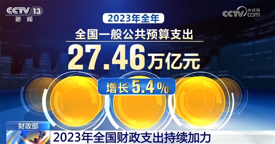 2023年,財政收入保持恢復(fù)性增長態(tài)勢,財政支出持續(xù)加力。具體來看,去年年初,財政赤字率按3%安排。同時,為支持災(zāi)后恢復(fù)重建和提升防災(zāi)減災(zāi)救災(zāi)能力,去年四季度增發(fā)1萬億元國債,全部通過轉(zhuǎn)移支付安排給地方。2023年全年,全國一般公共預(yù)算支出27.46萬億元,增長5.4%。社會保障和就業(yè)、教育、科學(xué)技術(shù)、農(nóng)林水、城鄉(xiāng)社區(qū)等重點支出領(lǐng)域保障有力。