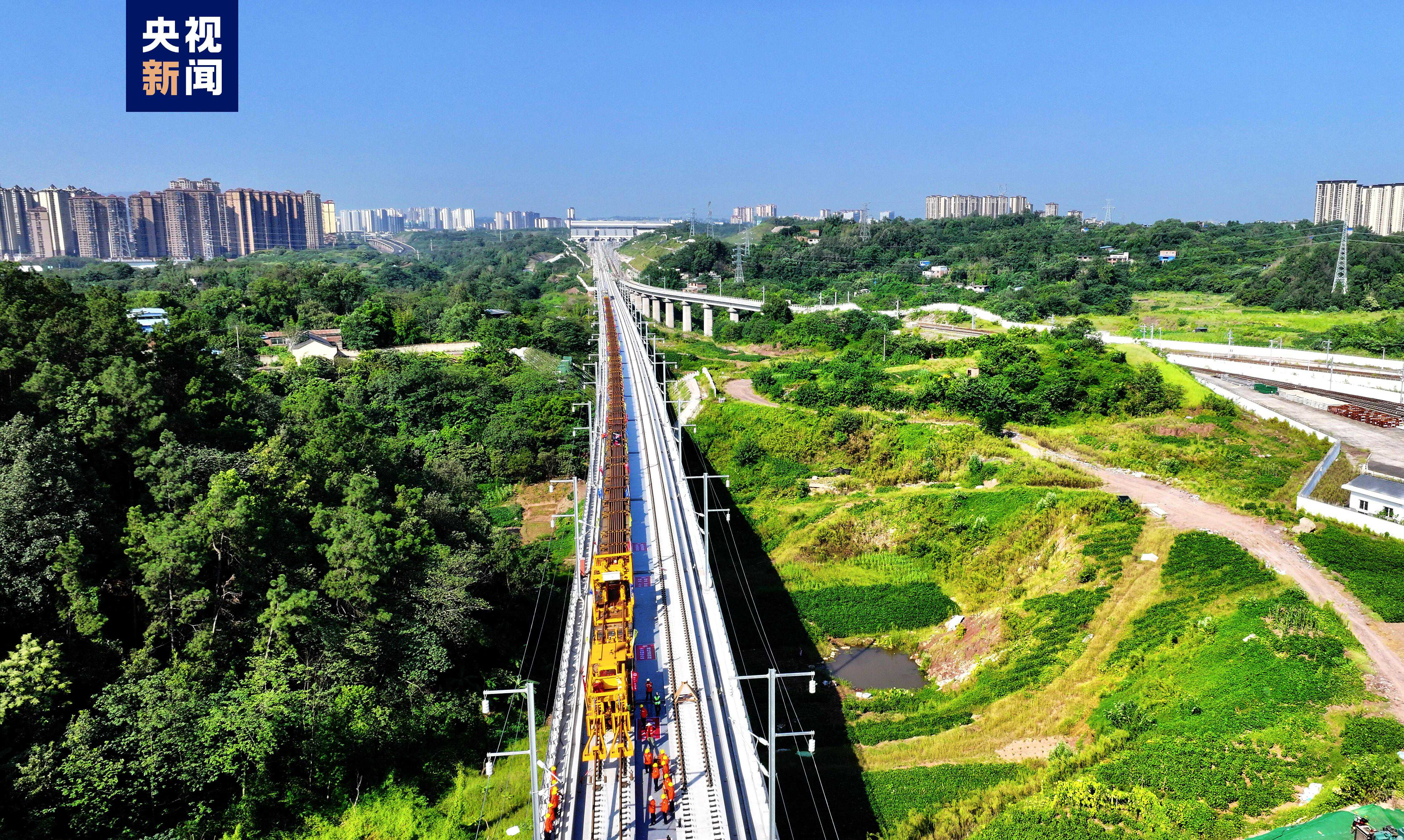 渝昆高鐵渝宜段正線全長約205公里,設計時速350公里,此次鋪軌工程量總共約391公里。鋪軌完成后將加快全線焊軌等作業(yè)。