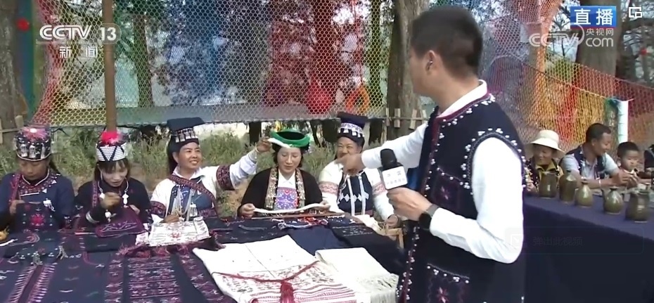 “過春節(jié),穿新衣。”民族刺繡一針一線繡出來了山川湖海、日月繁星,不僅有帽子、衣服,還能做成杯墊、雨傘等,搭配起來都很好看。