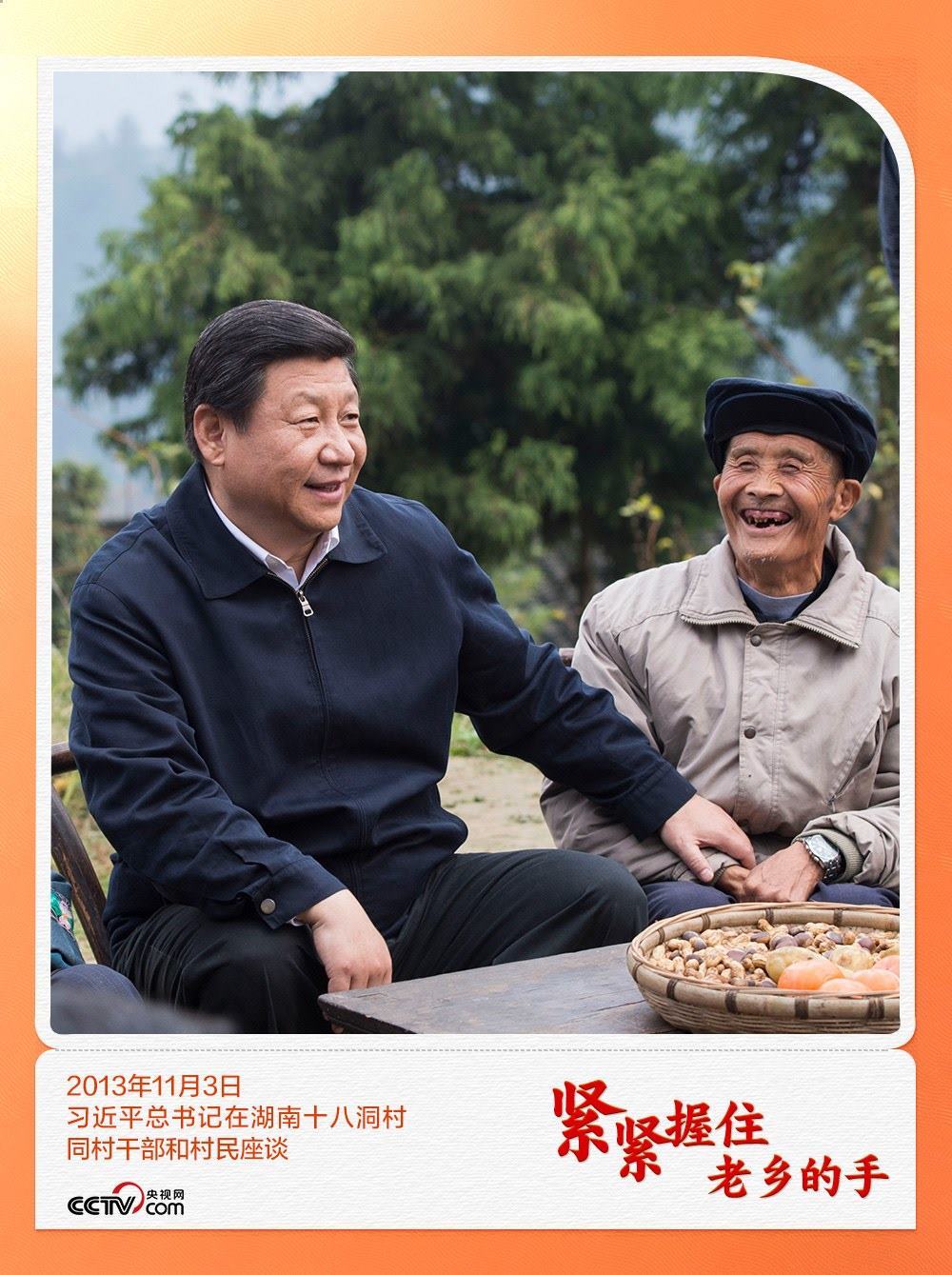 熟悉的動作、溫暖的話語,表達的是人民領(lǐng)袖對農(nóng)民朋友濃濃的情誼。