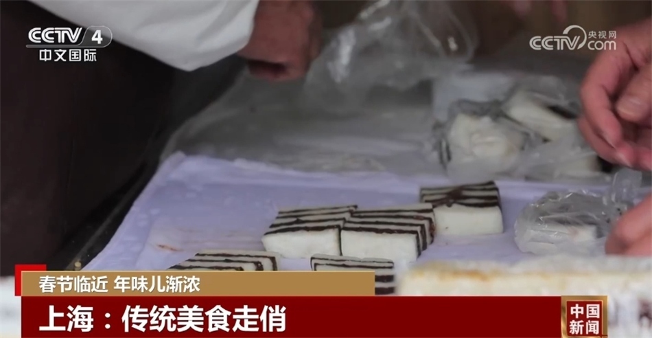 在上海,許多古鎮(zhèn)張燈結(jié)彩迎接春節(jié),老字號(hào)食品店也排起了長(zhǎng)龍。在一家糕團(tuán)店前,購(gòu)買(mǎi)傳統(tǒng)糕點(diǎn)的顧客絡(luò)繹不絕,崇明糕、定勝糕、紅糖糕等各具特色的傳統(tǒng)糕點(diǎn),不僅香甜美味,還能為新年討得一個(gè)好彩頭。