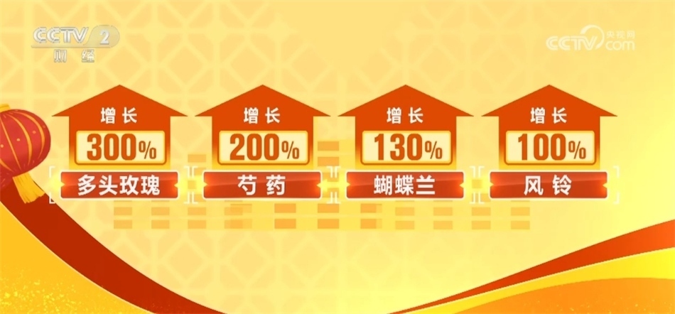數(shù)據(jù)顯示,多頭玫瑰、芍藥、蝴蝶蘭、風鈴等鮮花銷售同比增長均超100%,而一些較為小眾的品類也成為春節(jié)期間的熱銷品。