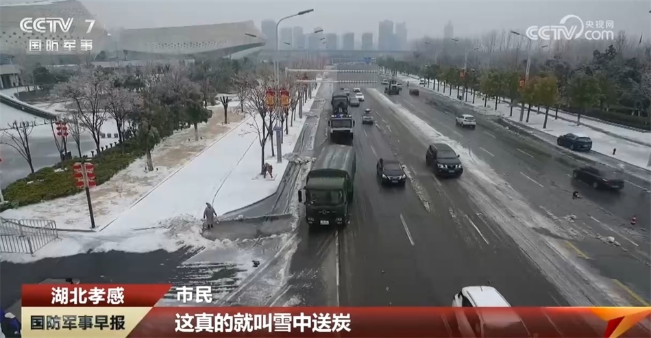央視網(wǎng)消息:受連日強(qiáng)冷空氣影響,中部地區(qū)出現(xiàn)大范圍寒潮,湖北省孝感市因雨雪天氣,導(dǎo)致道路結(jié)冰濕滑,城市道路交通嚴(yán)重受阻。武警孝感支隊(duì)緊急出動(dòng)80多名官兵,支援地方破冰除雪,為受困車輛提供幫助,確保城市重點(diǎn)路段和主干道暢通。