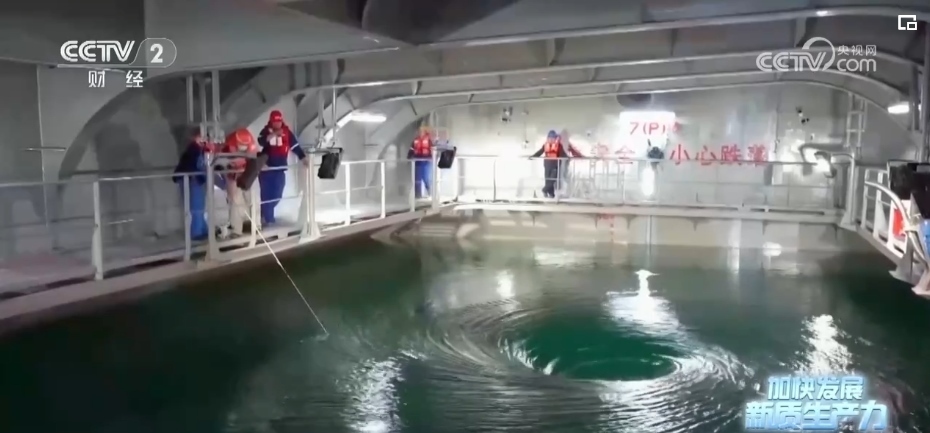 依靠首創(chuàng)的“船載艙養(yǎng)”模式,國信1號(hào)養(yǎng)殖工船,每年能實(shí)現(xiàn)3700噸高品質(zhì)魚類和650噸優(yōu)質(zhì)蛋白的供給。到了收獲的時(shí)候,艙內(nèi)的大黃魚將通過吸魚泵和傳送帶直接轉(zhuǎn)運(yùn)至休眠池,在那里進(jìn)行快速降溫休眠鎖鮮。