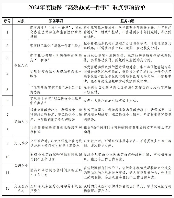 為貫徹落實(shí)《國務(wù)院關(guān)于進(jìn)一步優(yōu)化政務(wù)服務(wù)提升行政效能推動(dòng)“高效辦成一件事”的指導(dǎo)意見》(國發(fā)〔2024〕3號,下文簡稱《指導(dǎo)意見》),精細(xì)化科學(xué)化常態(tài)化優(yōu)化醫(yī)保服務(wù),提高群眾、企業(yè)和醫(yī)藥機(jī)構(gòu)獲得感,國家醫(yī)療保障局今天(2月9日)發(fā)布關(guān)于在醫(yī)療保障服務(wù)領(lǐng)域推動(dòng)“高效辦成一件事”的通知,著力提供更加便捷高效的醫(yī)療保障服務(wù)。