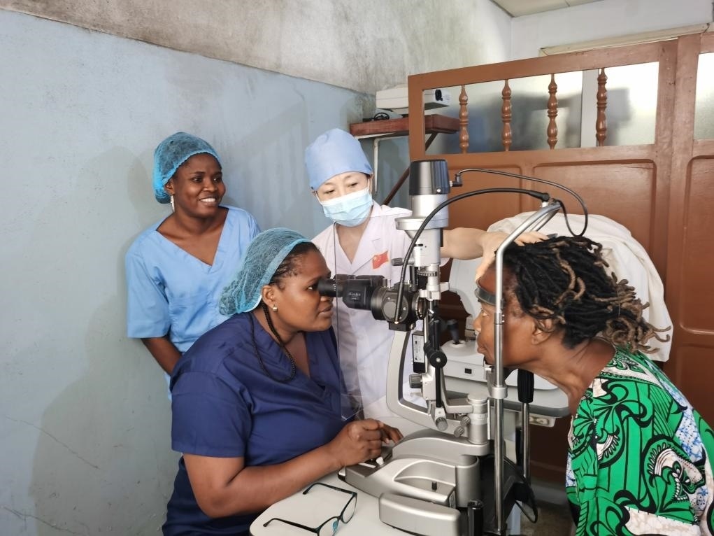 2023年9月,習(xí)近平主席同來訪的貝寧總統(tǒng)塔隆宣布中貝建立戰(zhàn)略伙伴關(guān)系,兩國元首共同見證簽署包括衛(wèi)生健康在內(nèi)的多項雙邊合作文件。作為落實兩國元首共識、惠及當?shù)孛裆囊豁椫匾e措,來自中國的眼科專家同中國第26批援貝寧醫(yī)療隊一起在貝寧開展“光明行”活動,為當?shù)?00多名白內(nèi)障患者提供診療,并在當?shù)赝苿咏ⅰ爸胸愌劭浦行摹薄?/p>