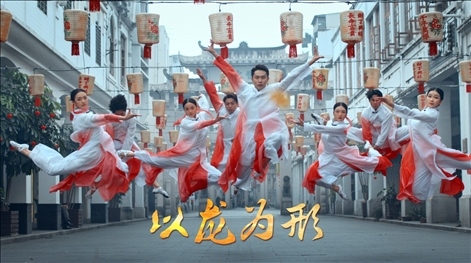 “有一條龍,藏在心里”,一招一式,以龍為形,以舞蹈之美勾畫武術(shù)之韻。武舞同源,形意相融,通過精巧的舞蹈造型設(shè)計(jì),將龍形拳與現(xiàn)代舞相結(jié)合。龍形拳的剛勁有力與現(xiàn)代舞的優(yōu)雅美感同步上演。以意為神、以氣催勁、內(nèi)外合一,完美演繹出龍的身姿。