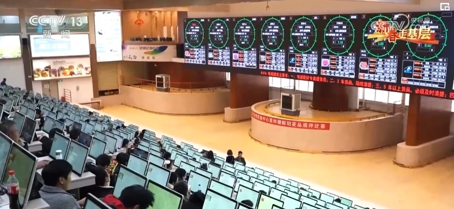 這里是昆明花卉拍賣交易中心,年交易量近25億枝,高峰期每天交易量1100多萬枝。這里的3000多位鮮花經(jīng)紀(jì)人,鏈接著3萬多家供貨商。這里的40多個(gè)品類,3000多個(gè)品種的鮮切花,市場遍及全球40多個(gè)國家和地區(qū)。這里的拍賣交易中心,平均每一筆花的交易時(shí)間不到4秒,但凡有點(diǎn)猶豫,就拍不到自己想要的花。