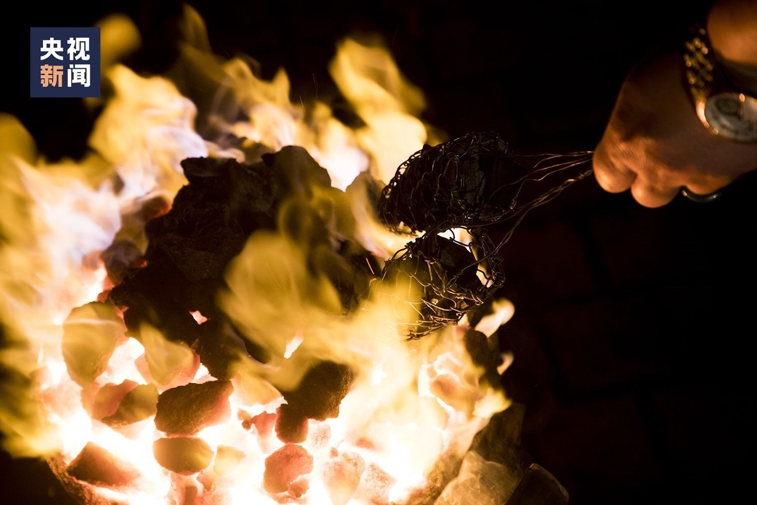 △表演前,朱華偉在燒鐵水。