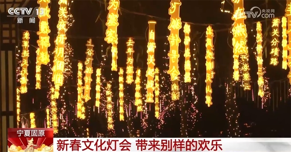 在寧夏固原的“西湖公園”內(nèi),一場以詩詞花燈、主題花燈為主的新春文化燈會給當(dāng)?shù)匕傩諑韯e樣的歡樂。