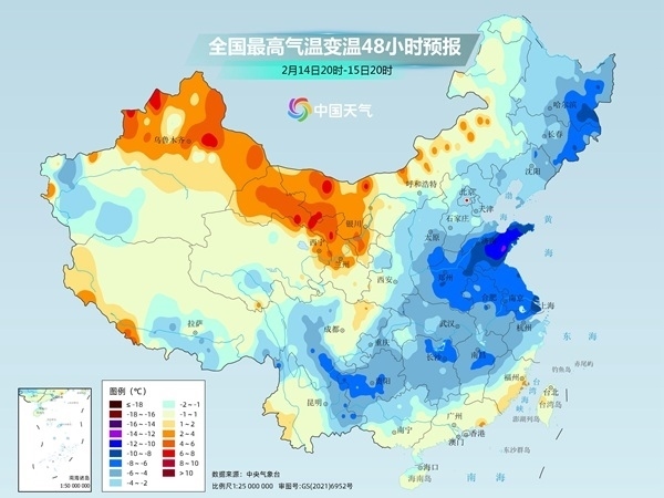 具體來看,14日隨著冷空氣主體抵達(dá),北方大部氣溫將出現(xiàn)明顯下滑,內(nèi)蒙古東部、吉林等地降溫10℃以上,15日,江淮、江南等地也會(huì)迎來10℃以上的“斷崖”式降溫。