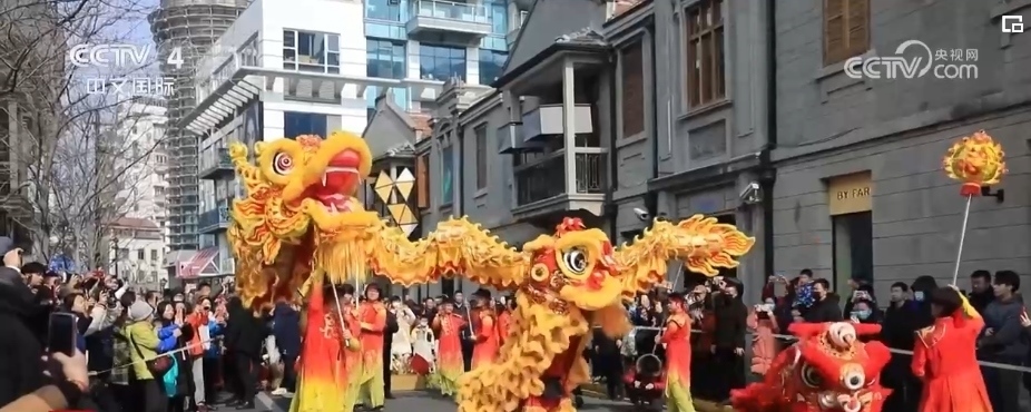 在上海的大街小巷,舞龍舞獅、光影秀等各類新春活動(dòng)陸續(xù)登場(chǎng),讓市民游客感受龍年的歡騰圖景。一大早,隨著鑼鼓聲激昂開(kāi)場(chǎng),一條金龍和兩頭活潑的醒獅在上海市茂名北路威武亮相。龍獅團(tuán)成員們舞動(dòng)一條長(zhǎng)約30米的巨龍?jiān)诮质猩洗┧笥巫撸瞬簧偈忻裼慰婉v足觀看。