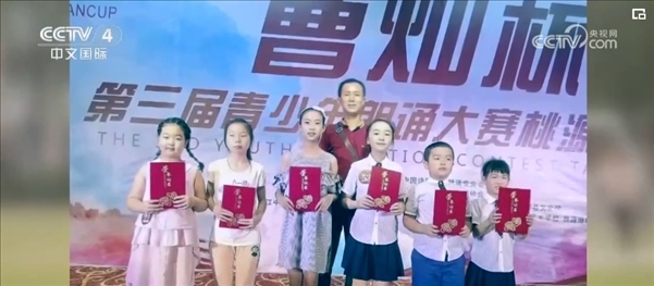 最初只有五名學(xué)生的朗誦團“沅水童聲”就這樣成立了。上課和朗讀,幾乎占據(jù)了郭云兵的全部時間,他買來教材、打卡各個平臺、總結(jié)朗讀技巧,他把舞臺從教室搬到操場上、沅水河邊,鼓勵大家勇于表達……在2017年的“曹燦杯”全國青少年朗誦大賽中,孩子們一路過關(guān)斬將殺進省賽,捧回3塊金牌。很多孩子變得越來越自信,也在成長中逐漸懂事,感受到父母的不易。