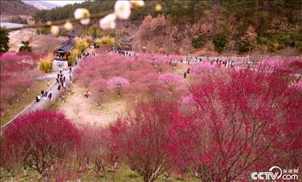湖北十堰秦巴植物園里萬(wàn)畝梅花盛開(kāi),漫山遍野如云似霞。