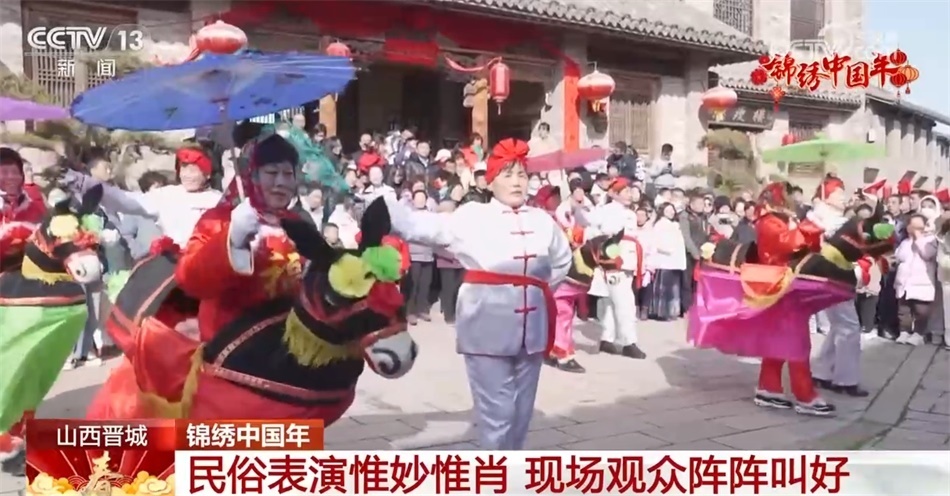在山西晉城澤州縣大陽古鎮(zhèn)景區(qū),演員身著色彩鮮艷的古裝,伴著歡快熱鬧的小調(diào),自編自演的民俗表演輪番登場,擔花籃、劃旱船等特色傳統(tǒng)民俗節(jié)目演繹得惟妙惟肖,贏得現(xiàn)場觀眾陣陣叫好。
