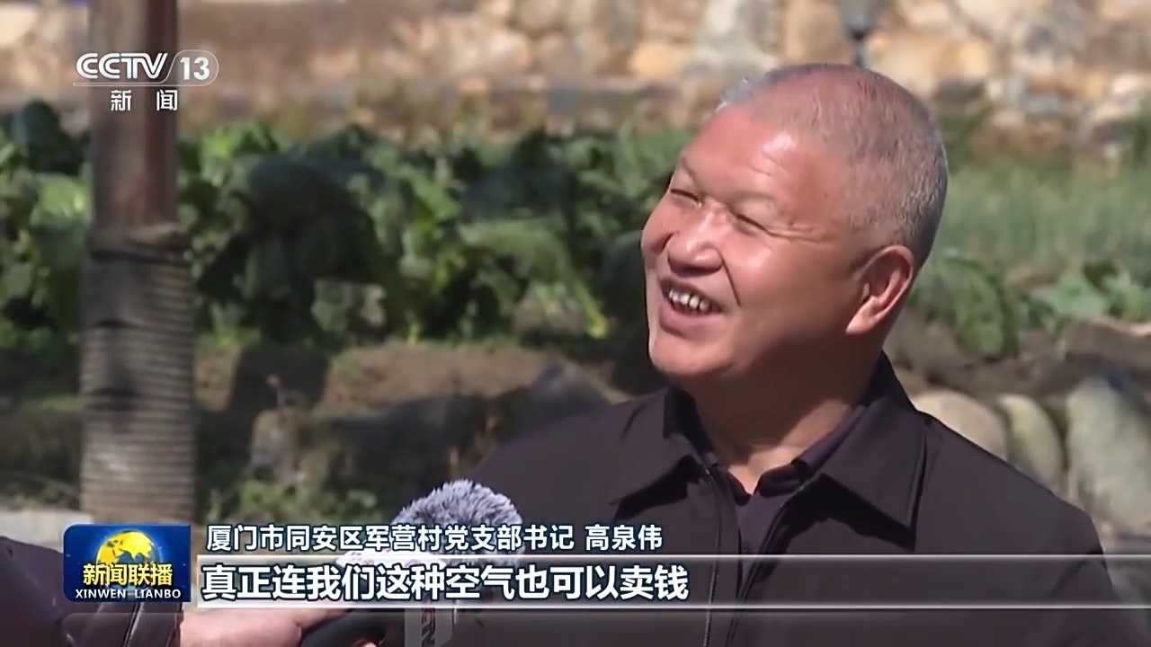 廈門市同安區(qū)軍營村黨支部書記 高泉偉:真正連我們這種空氣也可以賣錢,我們茶園所生產(chǎn)的這些碳匯,已經(jīng)賣出去了兩次了。