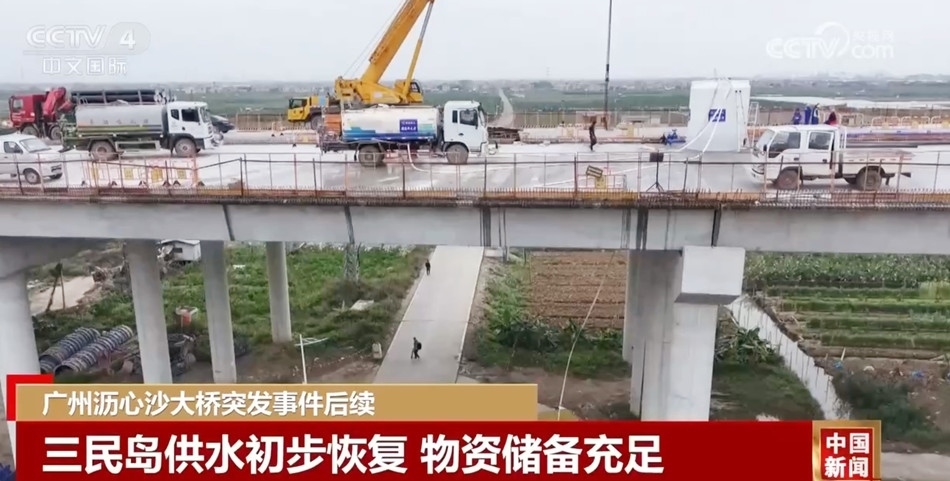 瀝心沙大橋突發(fā)事件還導(dǎo)致通往三民島的供水管斷裂,島上居民用水受到影響。經(jīng)過搶修,目前三民島供水已初步恢復(fù),島上供電正常、物資儲(chǔ)備充足。