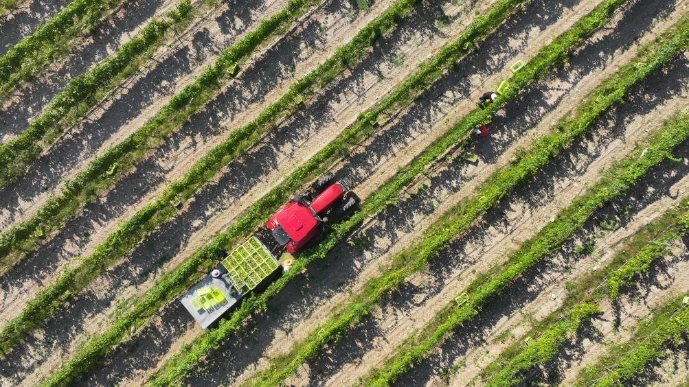 2023年9月,隨著寧夏賀蘭山東麓種植的貴人香、霞多麗等釀酒葡萄品種陸續(xù)成熟,當?shù)鼐魄f迎來釀酒季。新華社記者 王鵬 攝