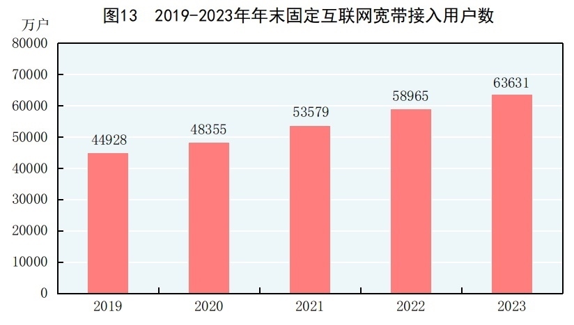 [33]100M速率及以上的寬帶接入用戶是指報告期末下行速率大于或等于100Mbit/s的寬帶接入用戶。