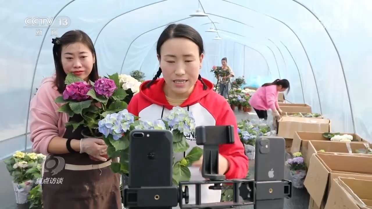 江蘇省宿遷市沭陽縣是全國聞名的“花木之鄉(xiāng)”,也是江蘇省面積最大的花木生產(chǎn)縣。近年來,沭陽進一步完善“互聯(lián)網(wǎng)+三農(nóng)”模式,依托本地花木特色優(yōu)勢和電商先發(fā)優(yōu)勢,持續(xù)壯大花木電商,推動產(chǎn)業(yè)迭代升級。每天晚上,走進沭陽縣新河鎮(zhèn)主播之家的盆景基地,都能看到一片熱鬧的場景。臺上一名拍賣師,臺下五十多名網(wǎng)絡(luò)主播同時直播,一邊與粉絲互動,一邊幫忙喊價。在沭陽的各個溫室大棚,也經(jīng)常能看到農(nóng)戶在帶貨直播,在這里,手機變身為“新農(nóng)具”、直播變成了“新農(nóng)活”。