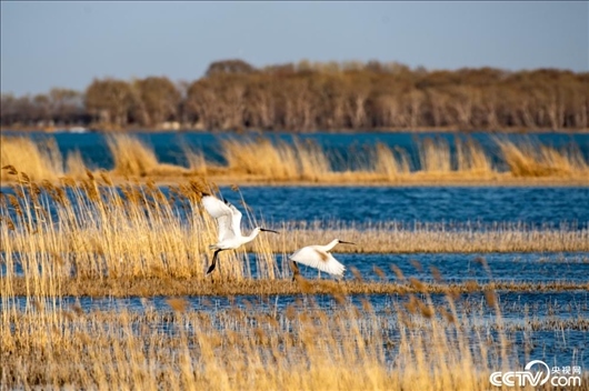 黑龍江齊齊哈爾,天氣回暖,一對(duì)白琵鷺來到扎龍自然保護(hù)區(qū)克欽湖濕地筑巢安家。