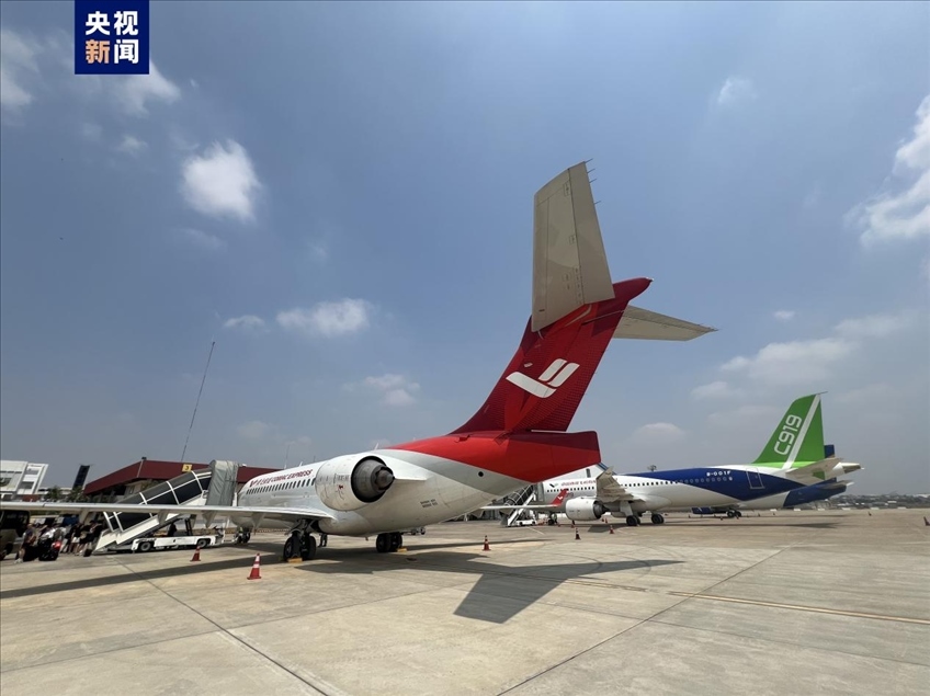 ·國(guó)產(chǎn)商用飛機(jī)C919及ARJ21首次飛抵柬埔寨。