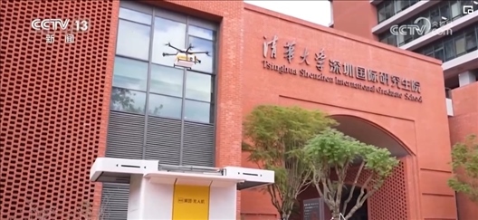 在深圳的一所大學(xué),一架無(wú)人機(jī)降落在外賣柜上方,通過(guò)精準(zhǔn)定位系統(tǒng)將外賣投入柜中。