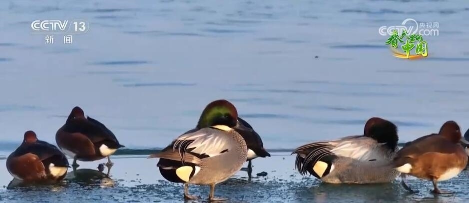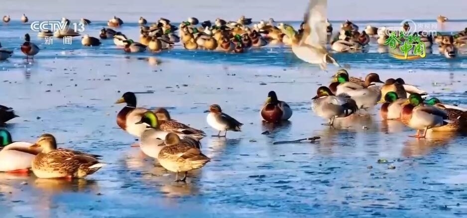 隨著天氣轉暖,山東泰安東平湖迎來了4000余只綠頭鴨、斑嘴鴨等水鳥,其中還有國家一級保護動物青頭潛鴨。它們有的在還沒融化的冰面上休息,有的在初融的水面上蕩漾玩耍,十分愜意。近年來,東平湖及周邊地區(qū)的生態(tài)環(huán)境得到了整體改善和提升,這里成為候鳥遷徙的重要停歇地和中轉站。
