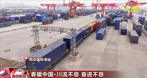 忙碌起來的不只是港口,西安國際港站汽笛聲聲、班列轟鳴,龍門吊正加緊作業(yè)。這輛滿載光伏設(shè)備和新能源汽車等貨物的中歐班列,預(yù)計9天后將抵達(dá)目的地——烏茲別克斯坦塔什干。在這里,平均每1小時40分鐘就有一列中歐班列出發(fā)或到達(dá)?!耙粠б宦贰苯ㄔO(shè)讓西部成為開放前沿,開放是一種理念、一條路,更是一種胸襟。?