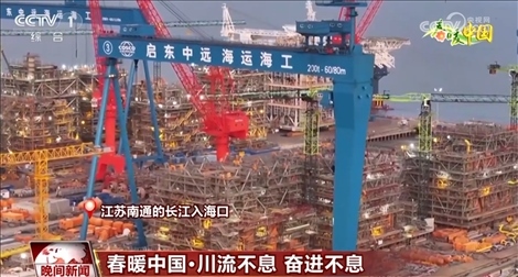 在江蘇南通的長江入海口,一個個造型各異的“巨無霸”讓人震撼。眼前的這艘海上浮式生產(chǎn)儲油輪已經(jīng)進(jìn)入最后的模塊吊裝施工階段。與此同時,自升式風(fēng)電安裝船、全球最大集裝箱船等重點(diǎn)高端產(chǎn)品不斷取得突破。長江入海口是終點(diǎn)也是起點(diǎn),所謂突破就是將終點(diǎn)當(dāng)成起點(diǎn),不停出發(fā)。