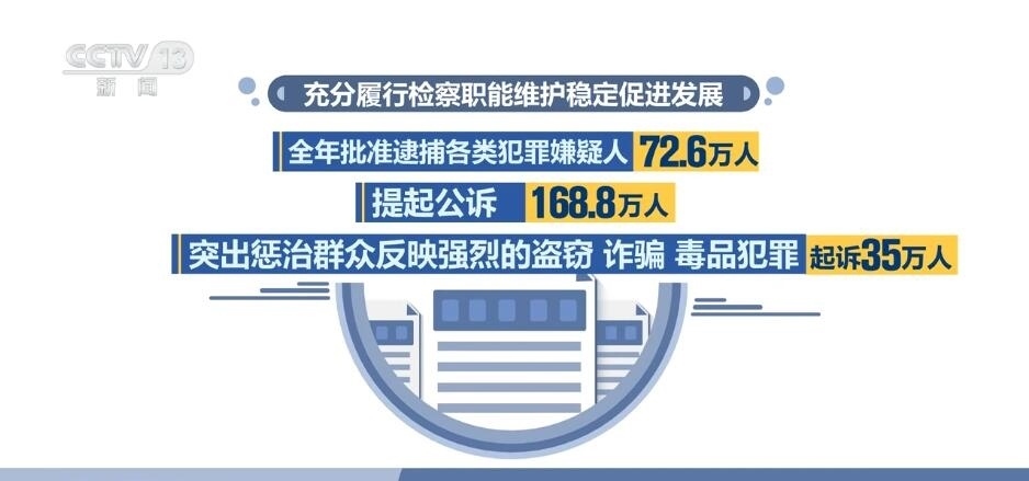 充分履行檢察職能維護穩(wěn)定促進發(fā)展。全年批準(zhǔn)逮捕各類犯罪嫌疑人72.6萬人,提起公訴168.8萬人。突出懲治群眾反映強烈的盜竊、詐騙、毒品犯罪,起訴35萬人。