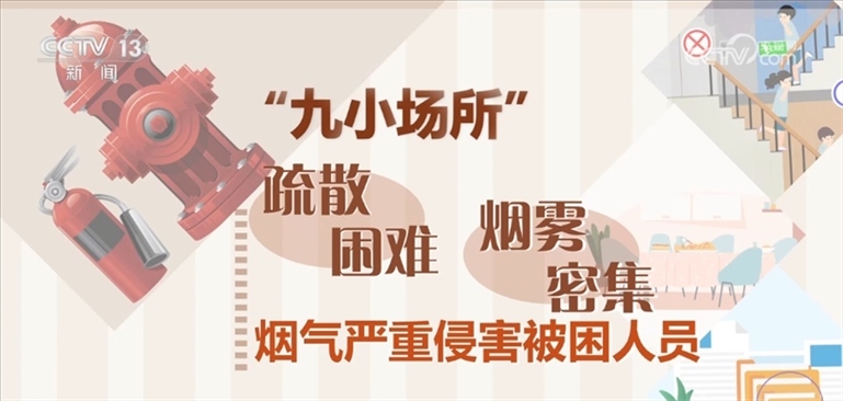 “九小場所”是指建筑面積在300平方米以下的小商場、額定就餐人數(shù)100人以下的小飯店、床位數(shù)50張以下的小旅館,以及小型的公共娛樂、休閑健身、醫(yī)療、教學、生產加工、易燃易爆危險品銷售儲存等場所?!熬判鏊币坏┏霈F(xiàn)火災,容易形成大面積燃燒。通常,“九小場所”疏散困難、煙霧密集,煙氣嚴重侵害被困人員。同時,水源缺乏、滅火救援難度大,極易造成人員傷亡。