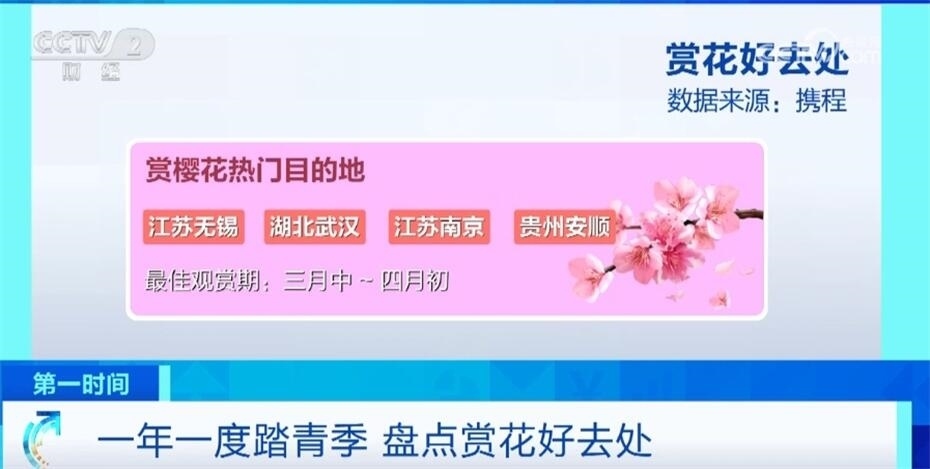 根據(jù)花的類別,旅游平臺(tái)推出了最具人氣的前四名賞花目的地,其中賞櫻花熱門目的地有江蘇無(wú)錫、湖北武漢、江蘇南京、貴州安順。