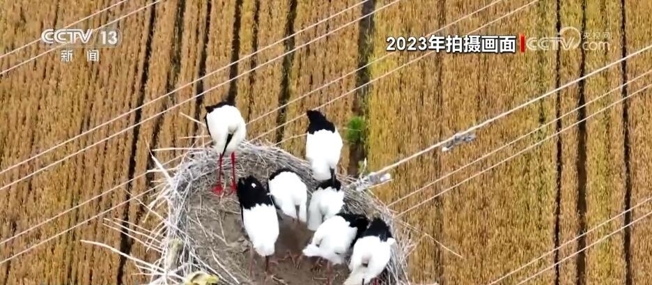 由于東方白鸛筑巢繁殖的位置位于輸電鐵塔頂端,為了給它們營造一個安全舒適的生活環(huán)境,當(dāng)?shù)剡€成立了愛鳥志愿服務(wù)隊,守護人類共同的朋友。