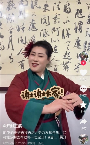 近日,河南開封4A級(jí)景區(qū)萬歲山·大宋武俠城的相親欄目“王婆說媒”走紅網(wǎng)絡(luò),主持人王婆因?yàn)榭诓藕捅硌莨αθ藲飧邼q,“王婆說媒”被網(wǎng)友稱為“接地氣版《非誠勿擾》”。在這里,單身游客可以毛遂自薦,在舞臺(tái)上展示風(fēng)采,表達(dá)對喜歡的人的情感,或者從現(xiàn)場挑選心儀的游客相親。王婆接受媒體采訪表示,當(dāng)媒婆一年,已經(jīng)促成了四五十對姻緣。