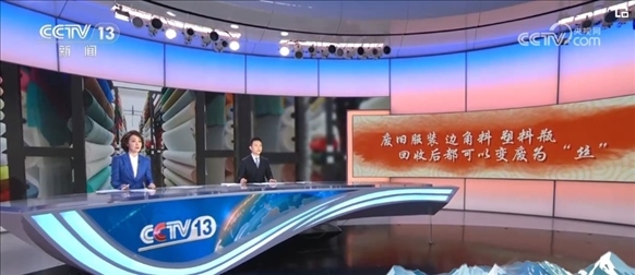萬物皆可“織”是我們尋找紡織原料的目標。廢舊服裝、邊角料、塑料瓶,回收后都可以變廢為“絲”。8個廢舊塑料瓶抽出的滌綸絲,就可以織成一件男士T恤衫。