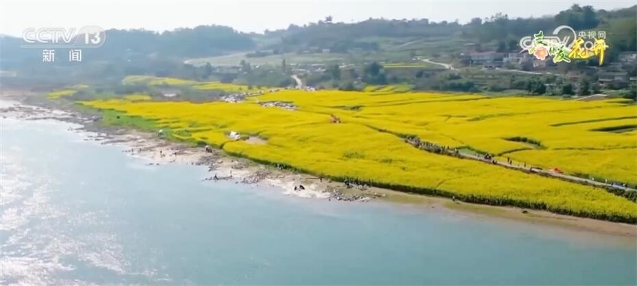 這里是長江入渝后的第一個成片油菜花海。由于河床泥沙適宜油菜生長,當?shù)剞r(nóng)民也有了種植油菜的傳統(tǒng)。每年三月,大地就像鋪上了一層金燦燦的地毯,成為游客親近自然、休閑游玩、共享生態(tài)福利的好去處。
