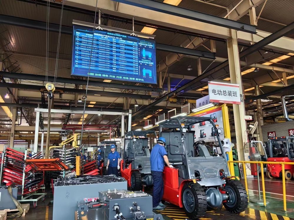 在安徽合力股份有限公司的生產(chǎn)車間,工人們?cè)谏a(chǎn)銷往RCEP成員國(guó)的叉車(2023年6月1日攝)。新華社記者 汪海月 攝