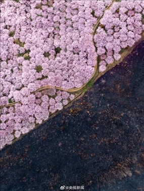 近日,有網(wǎng)友在貴州安順拍攝到這樣的畫面:山脊一側(cè)已是山花爛漫;而另一側(cè),曾被山火燒過的土地上,嫩芽悄悄破土。網(wǎng)友評論:這就是野火燒不盡春風吹又生的感動。圖自@歐陽陽陽Soleil?