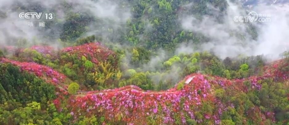 安徽岳西:嶺上開遍映山紅 嬌媚馨香繞群山
