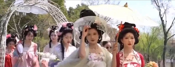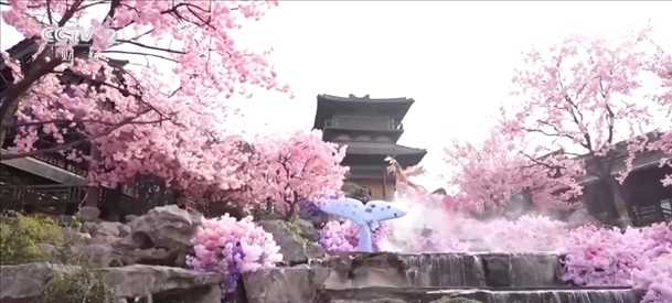 在江蘇常州,百萬株郁金香競相開放。櫻花、玉蘭、垂絲海棠等花木也開滿山谷,一簇簇粉白的花朵隨微風(fēng)搖曳,宛若世外桃源。伴著音樂,十二花神身著漢服踏春而來,構(gòu)成本次花朝節(jié)一道亮麗的風(fēng)景線。