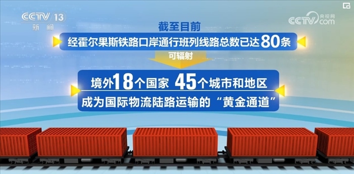 自2016年開出首趟中歐班列以來,經(jīng)霍爾果斯海關(guān)監(jiān)管的中歐(中亞)班列總量已超過3.5萬列。截至目前,經(jīng)霍爾果斯鐵路口岸通行班列線路總數(shù)已達(dá)80條,可輻射境外18個國家、45個城市和地區(qū),成為國際物流陸路運輸?shù)摹包S金通道”。