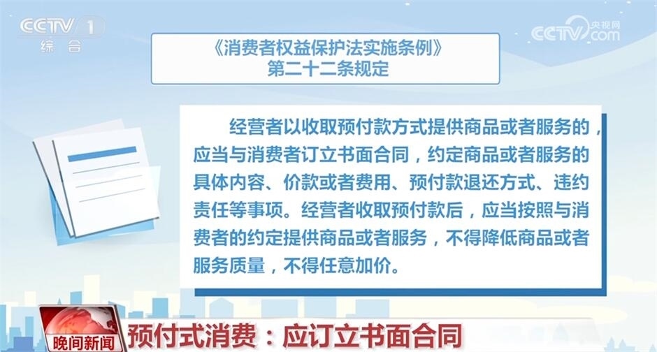 《消費(fèi)者權(quán)益保護(hù)法實(shí)施條例》第二十二條規(guī)定,經(jīng)營(yíng)者以收取預(yù)付款方式提供商品或者服務(wù)的,應(yīng)當(dāng)與消費(fèi)者訂立書(shū)面合同,約定商品或者服務(wù)的具體內(nèi)容、價(jià)款或者費(fèi)用、預(yù)付款退還方式、違約責(zé)任等事項(xiàng)。經(jīng)營(yíng)者收取預(yù)付款后,應(yīng)當(dāng)按照與消費(fèi)者的約定,提供商品或者服務(wù),不得降低商品或者服務(wù)質(zhì)量,不得任意加價(jià)。