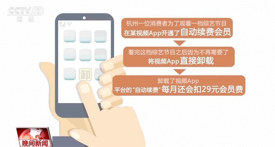 杭州一位消費(fèi)者為了觀(guān)看一檔綜藝節(jié)目,在一家視頻App開(kāi)通了自動(dòng)續(xù)費(fèi)會(huì)員,之后便直接將視頻App卸載。然而,平臺(tái)的“自動(dòng)續(xù)費(fèi)”并沒(méi)有終止,每月會(huì)費(fèi)照扣。