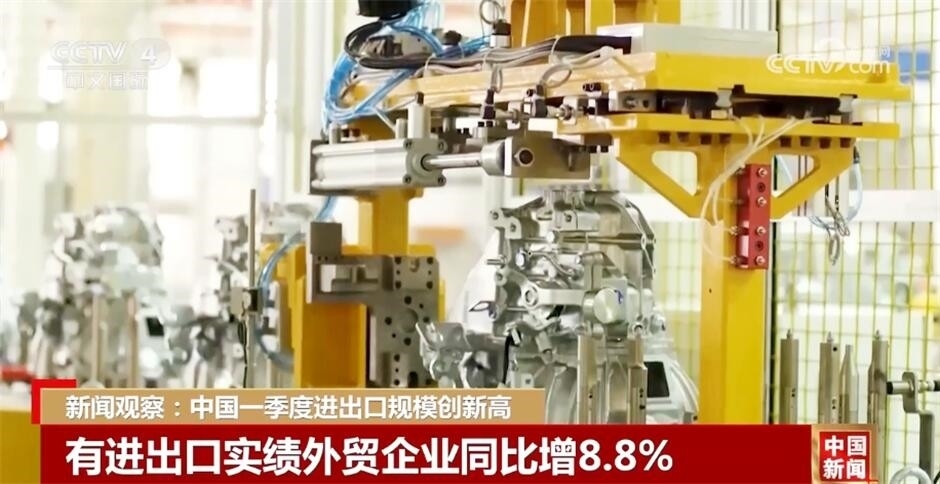 央視網(wǎng)消息:在4月12日下午舉行的國(guó)新辦新聞發(fā)布會(huì)上,海關(guān)總署相關(guān)負(fù)責(zé)人介紹,今年一季度,中國(guó)貨物貿(mào)易進(jìn)出口規(guī)模歷史同期首次突破10萬(wàn)億元,進(jìn)出口增速創(chuàng)6個(gè)季度以來(lái)新高,外貿(mào)發(fā)展質(zhì)量穩(wěn)步提升。