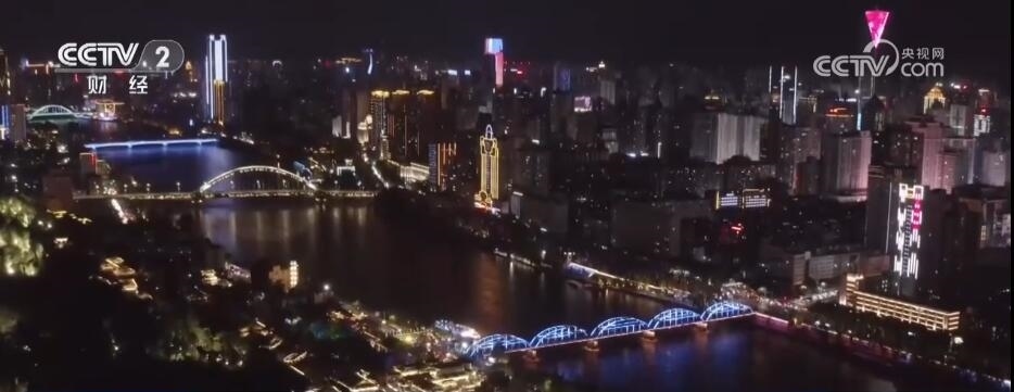 游船正在經(jīng)過(guò)被稱(chēng)為“天下黃河第一橋”的中山橋,作為來(lái)蘭州的必打卡地之一,四月以來(lái),這里的日均游客數(shù)量超過(guò)3.5萬(wàn)人次,從空中俯瞰,璀璨的霓虹燈讓中山橋看上去就像一條威武的巨龍橫臥在黃河之上。每當(dāng)游輪經(jīng)過(guò)的時(shí)候,橋上的人和船上的人都會(huì)揮手互動(dòng),這樣的善意和友好,就是你來(lái)到這里能夠感受的城市溫度。